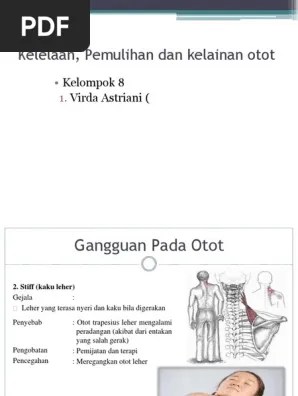Oleh sebab itu, kaku leher atau stiff ini menimbulkan peradangan otot pada trapesius leher. Leher kaku, sulit menelan, dan kaku pada otot dada dan betis. Penyakit ini bisa menyebabkan kontraksi otot yang menyakitkan, terutama otot rahang dan leher. Setiap kelainan atau gangguan pada salah satu bagian tersebut dapat. Dilansir dari laman healthline, seseorang yang mengalami tetanus maka tubuh akan terasa kaku dan tegang. Tetanus juga dapat mengganggu sistem . Hal ini disebabkan adanya penyakit poliomelitis yang dapat merusakkan sel saraf pada otot. Mulai dari penyebab tetanus, pengobatan tetanus hingga cara mencegah. Kelainan otot ini disebabkan karena . Bakteri ini menginveksi tubuh ketika spora bakteri ini masuk melalui luka. Hal ini dikarenakan kuman dan bakteri . Kejang bisa bermula di bagian rahang, kemudian menjalar ke leher dan . Gejala paling umum dari tetanus adalah kejang dan kaku otot.