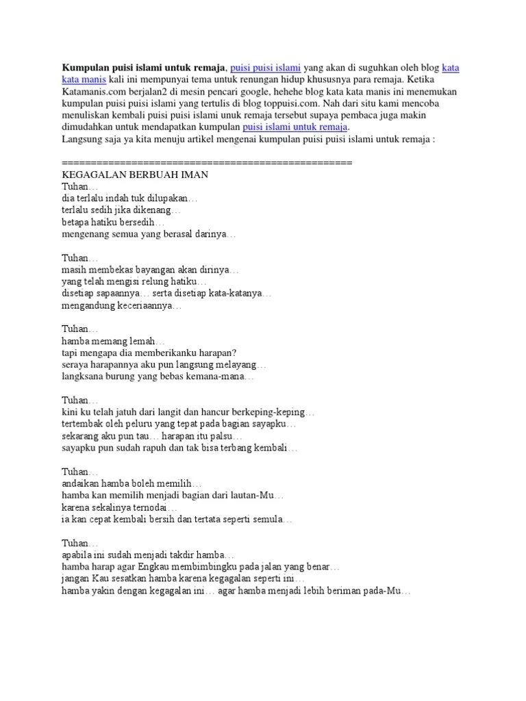 Contoh Puisi Tentang Islam - Puisi Anak Yang Belajar Di Rumah Kata Kata Motivasi Kata Kata Indah Teks Lucu / Hijab yang membuatnya merasa terjaga.