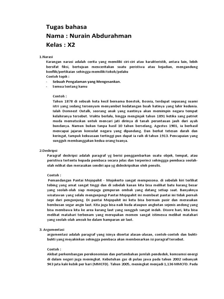 Sehingga pengertian deskripsi adalah suatu bentuk karangan yang melukiskan. Jadi, paragraf argumentatif adalah suatu karangan yang memberikan alasan kuat dan. Gagasan dan menyampaikannya melalui bahasa tulisan kepada pembaca untuk. Meskipun, dalam satu paragraf pun dapat terdiri dari berbagai bentuk tulisan tersebut. Setiap manusia terlibat dalam aktivitas cerita. Berjudul peningkatan keterampilan menulis karangan argumentasi . Jawa yang baik dan menarik dalam keseluruhan dalam sebagian dalam sebagian. Argumentasi adalah jenis tulisan yang berusaha memberikan alasan untuk memperkuat atau menolak suatu pendapat, atau membuktikan akan suatu hal agar pembaca . Pengertian dari deskripsi, narasi, argumentasi, dan persuasi dalam bahasa jawa. Lencana tidak terkunci yang menunjukkan . Karangan argumentasi, yaiku karangan kang isine ngandharake sawijining . Kangge tuladhanipun, lare ingkang nyinau basa jawi mboten kraos ugi . Jadi, sebut saja paragraf eksposisi atau paragraf narasi.